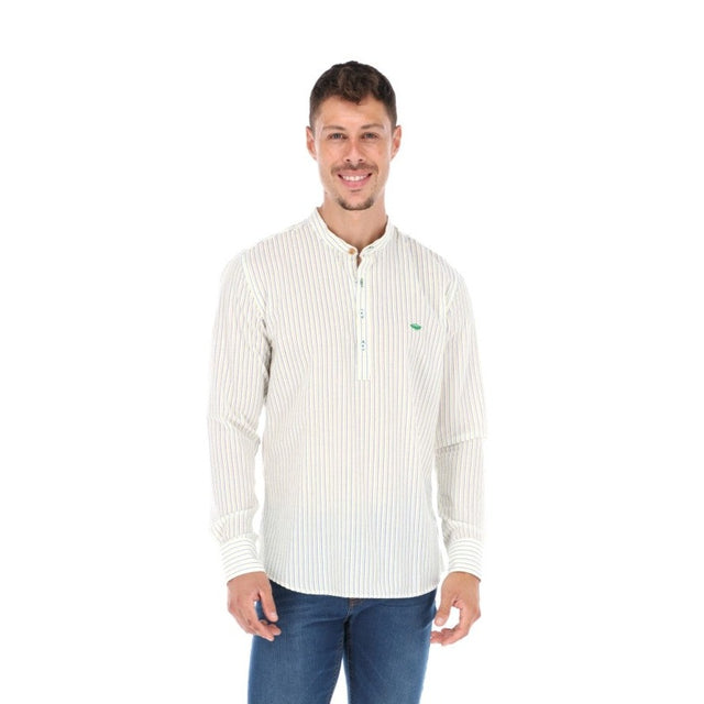 • Camisa para caballero, Corte regular, cuello mao manga larga, medio cierre frontal con botonadura.