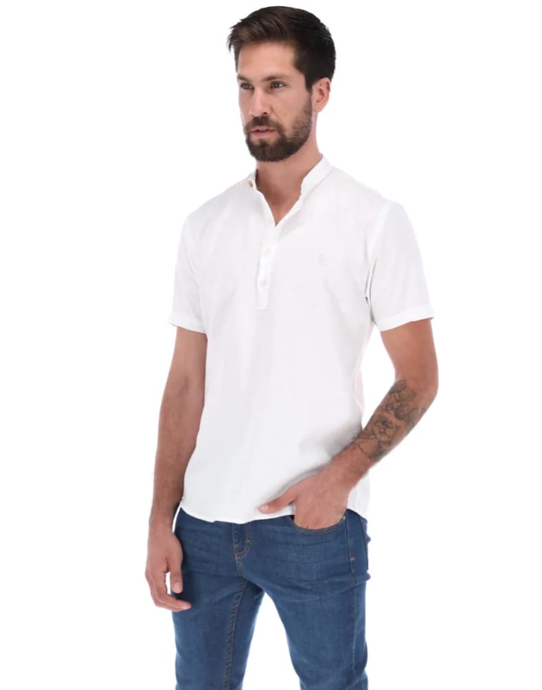 • Cuello mao, manga corta. Medio cierre frontal con botonadura.