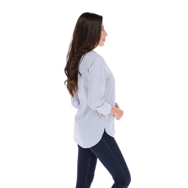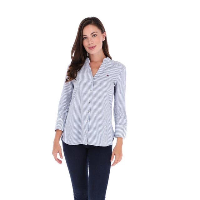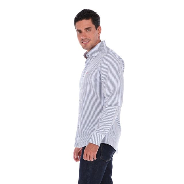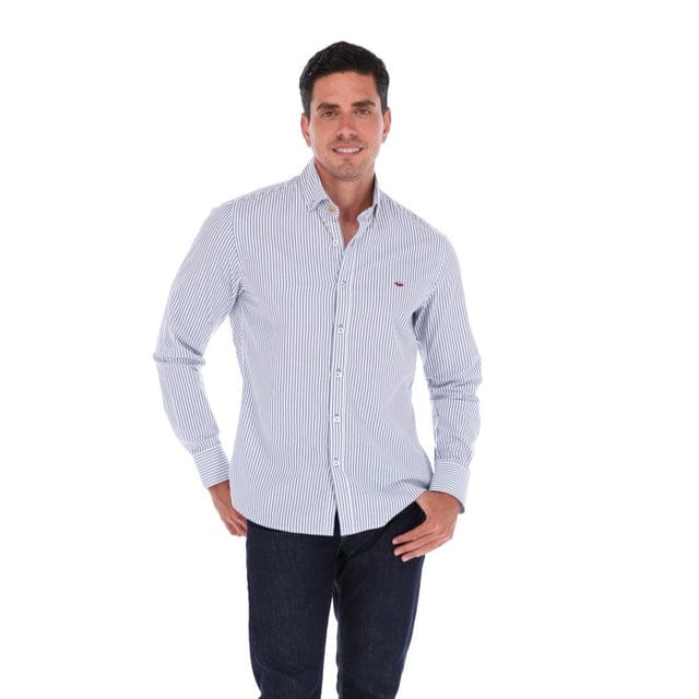 Camisa De Caballero Y Dama Manga Larga Rayas Azul