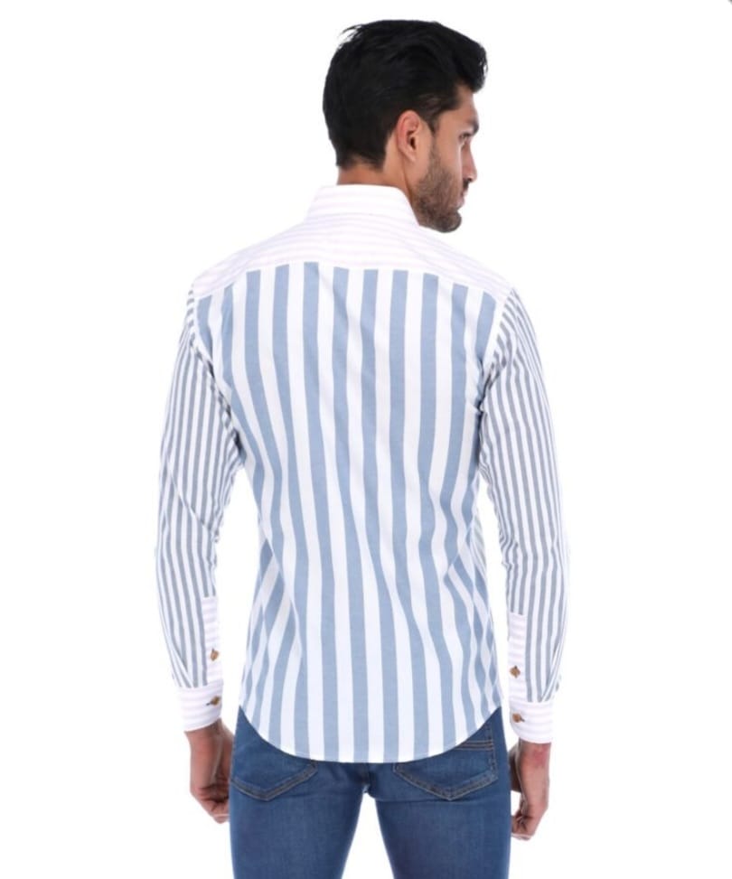 • Camisa, corte ligeramente ajustado, cuello button down, manga larga