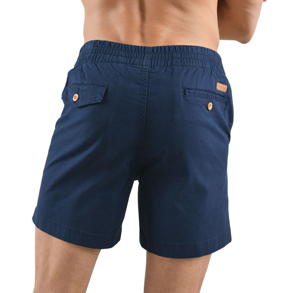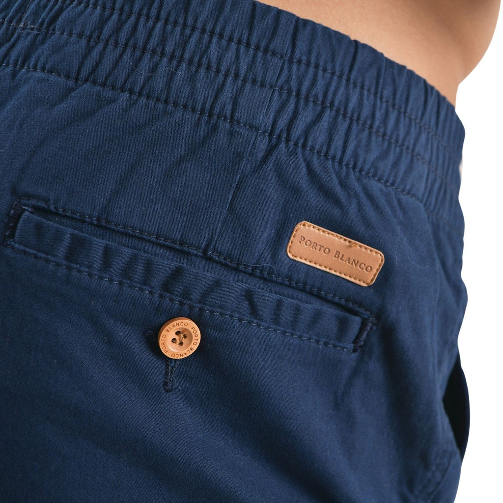 Bermuda Hombre Con Cintura Elástica Gabardina Azul