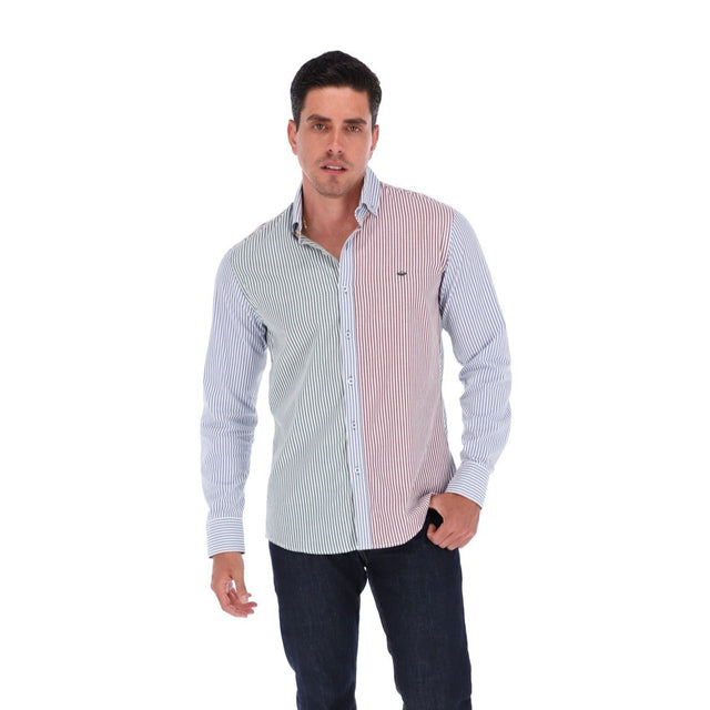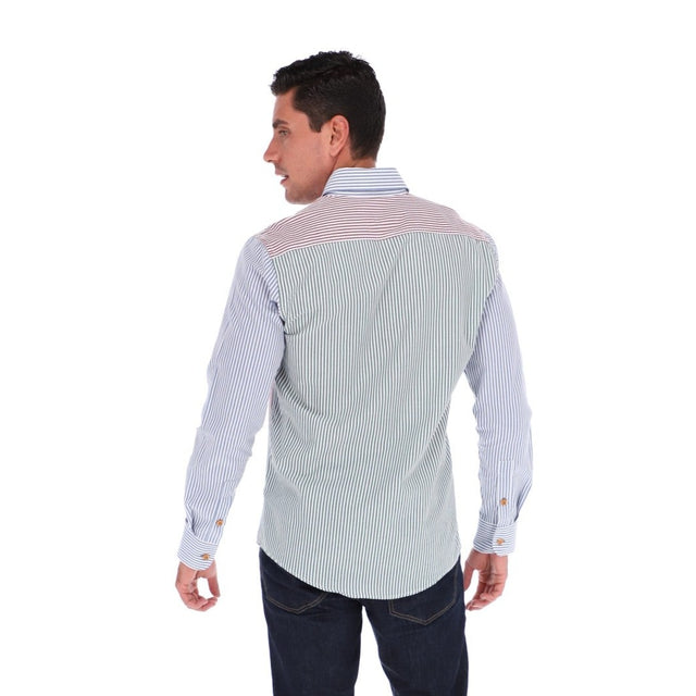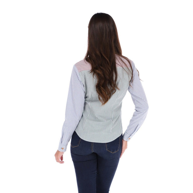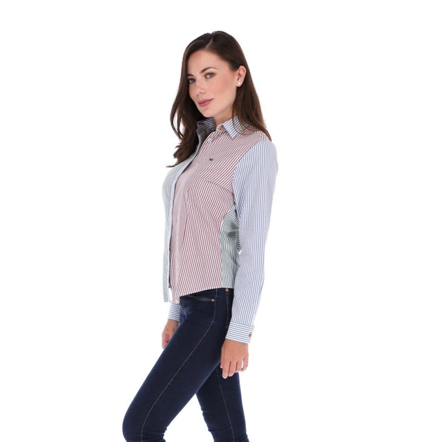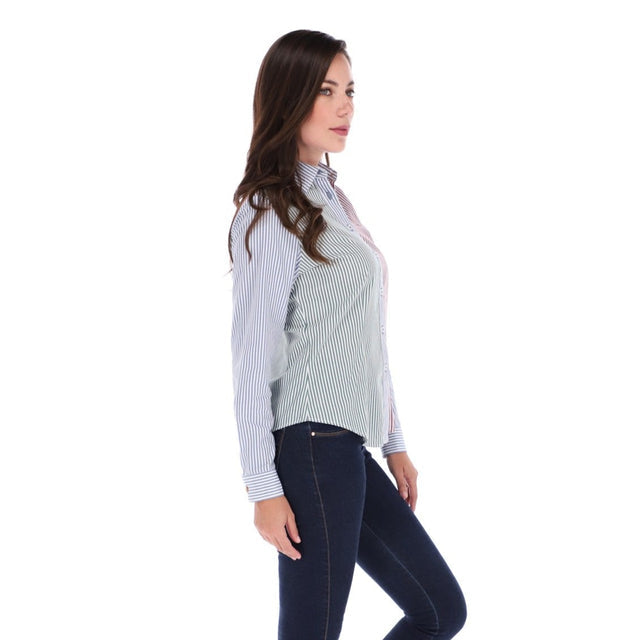 • Camisa Dama, manga larga de rayas bloques de colores.