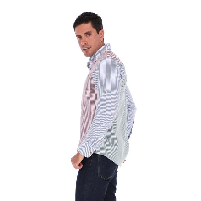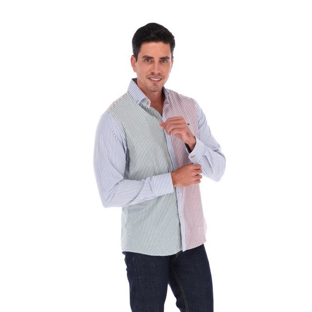 Camisa Caballero Dama Y Manga Larga Rayas Bloques Colores