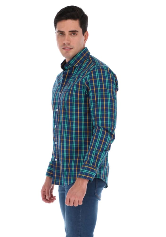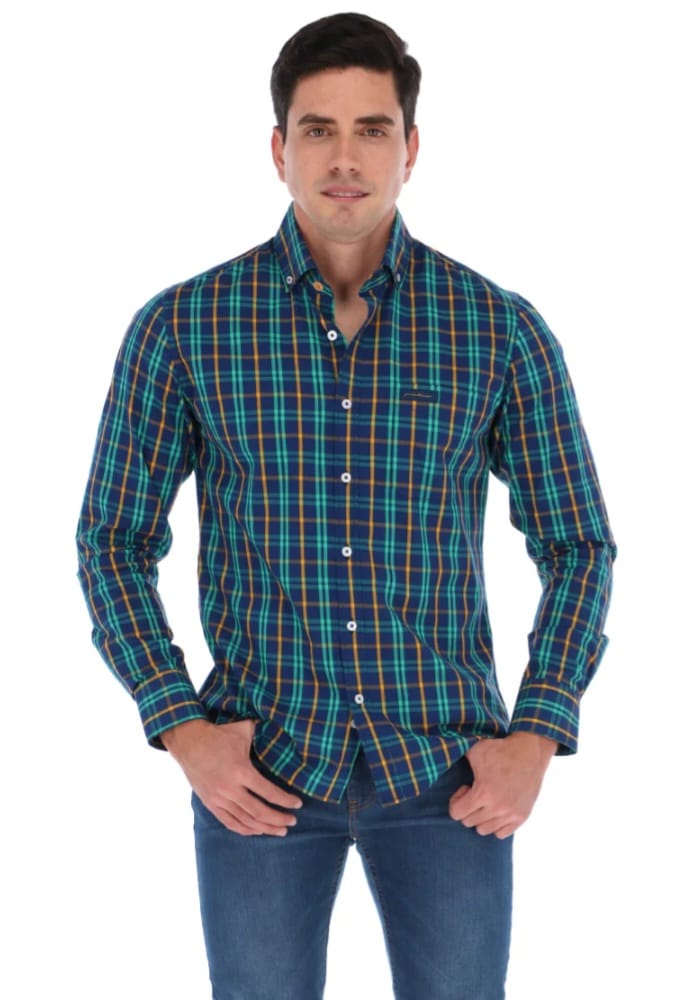• Camisa para caballero cuadros en colores combinados.