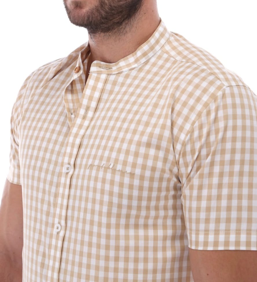 • Manga corta, cuello button down, cierre frontal con botonadura