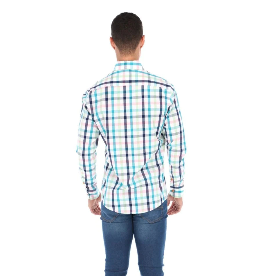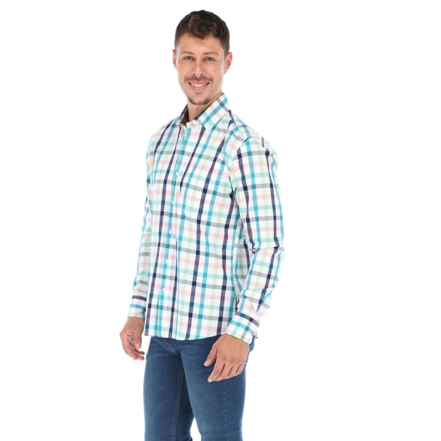 • Camisa caballero corte ligeramente ajustado, cuello button-down abotonado, manga larga