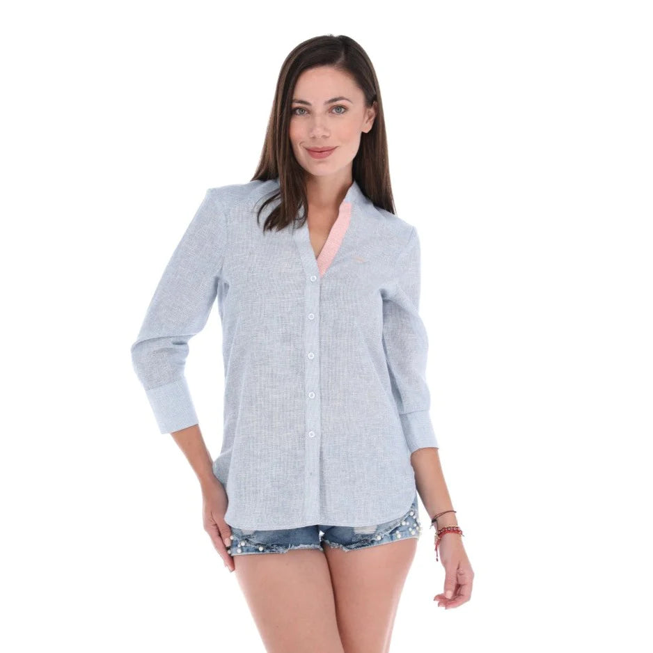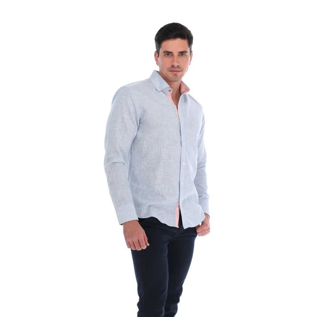 Camisa de Vestir Caballero Y Dama Tipo Lino Color Azul