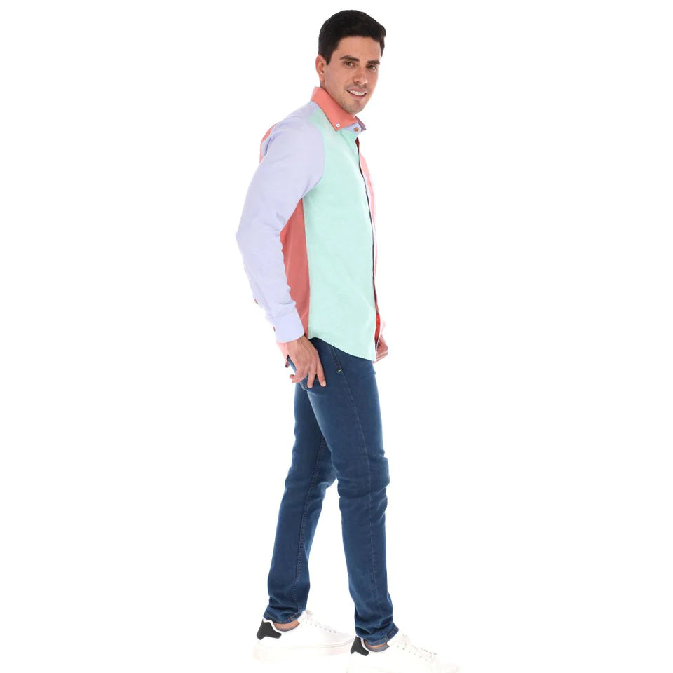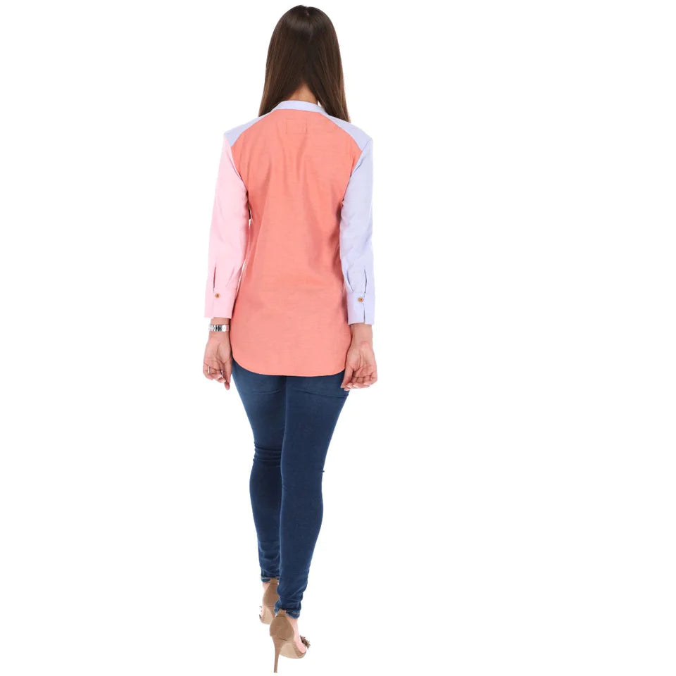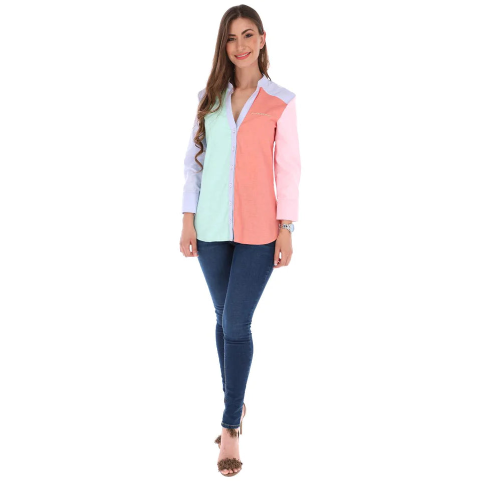 • Camisa de Mujer, Corte corte regular (ligeramente amplio), cuello mao, manga 3/4