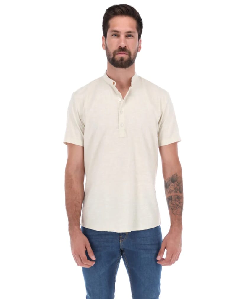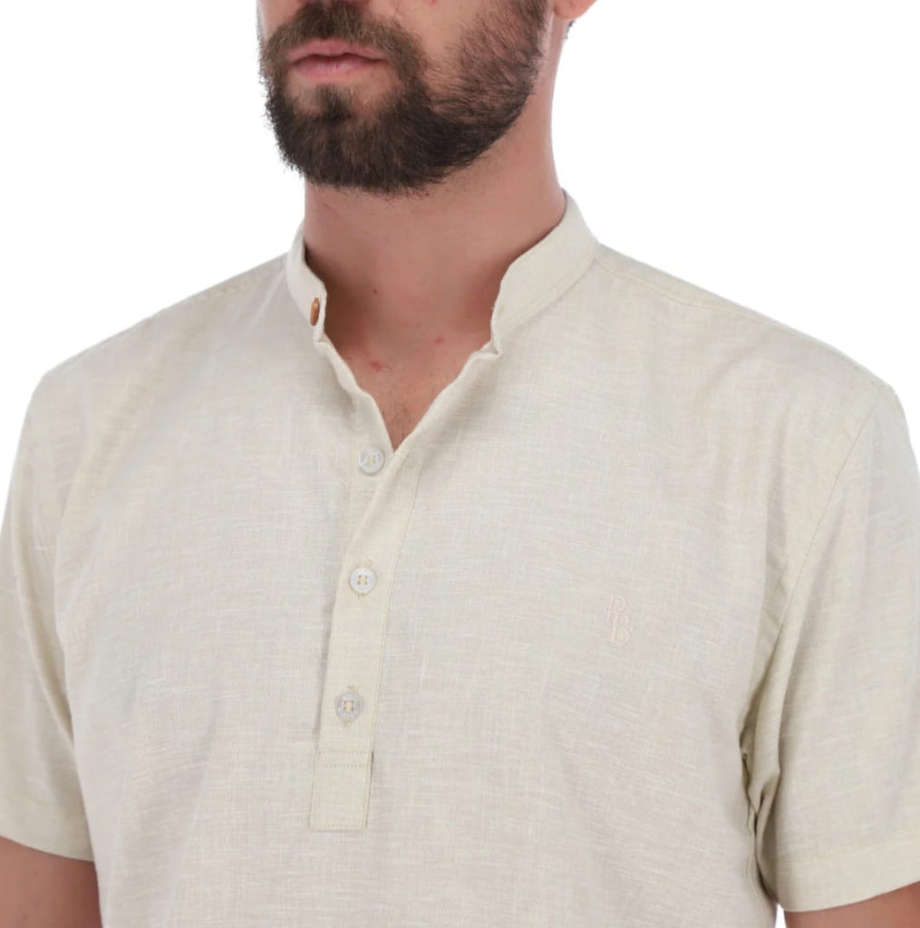 Camisa Ligera Cuello Mao Beige
