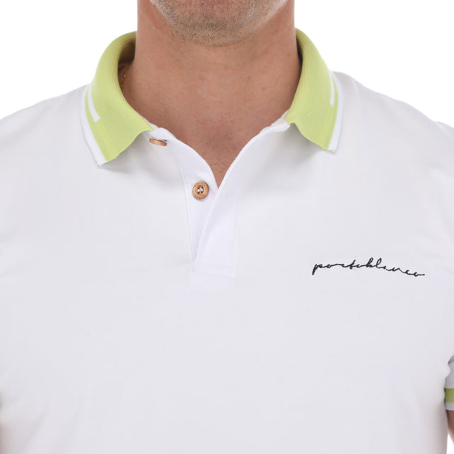 Playera Polo Para Caballero Y Dama Color Blanco Con Cuello Verde