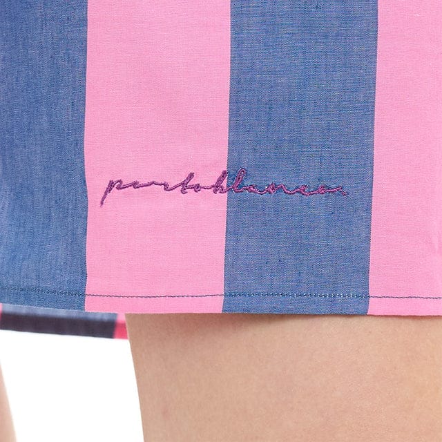 • Firma de la marca bordada en la falda.