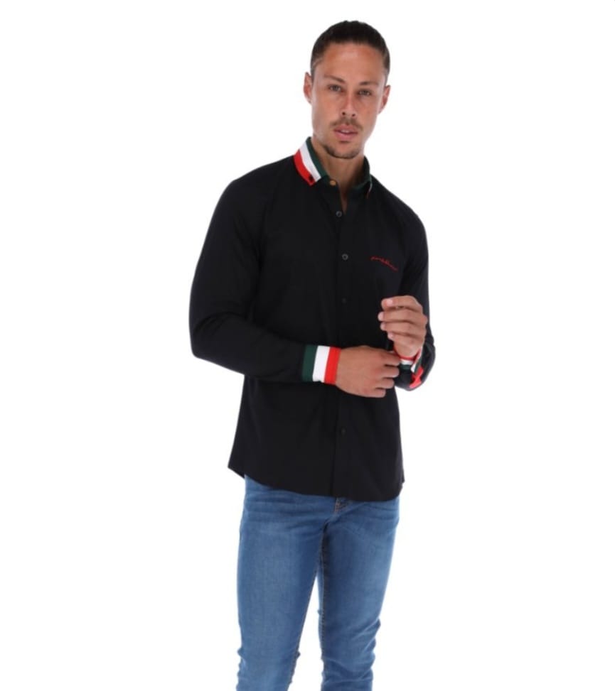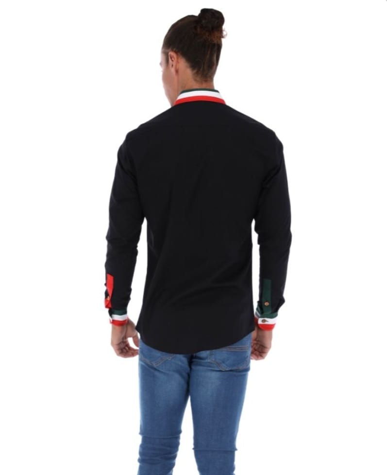 • Camisa corte ligeramente ajustado, cuello abotonado, manga larga