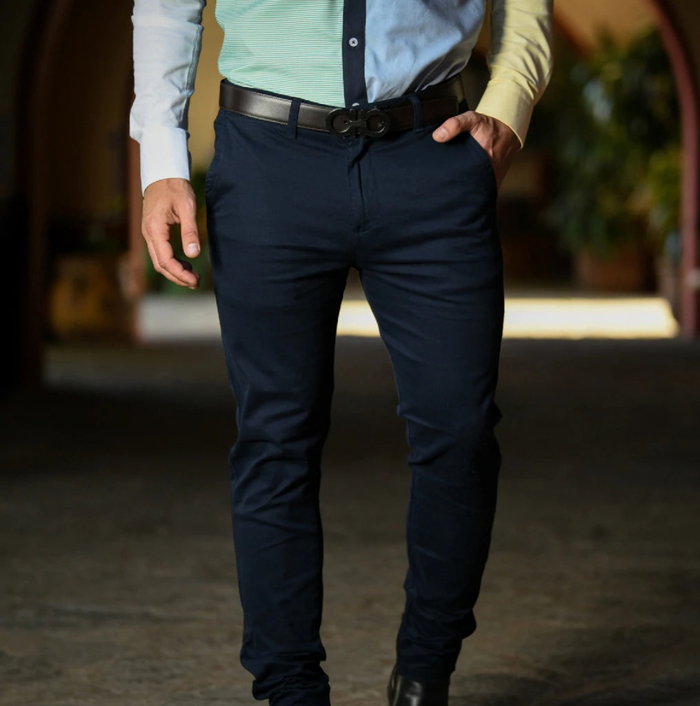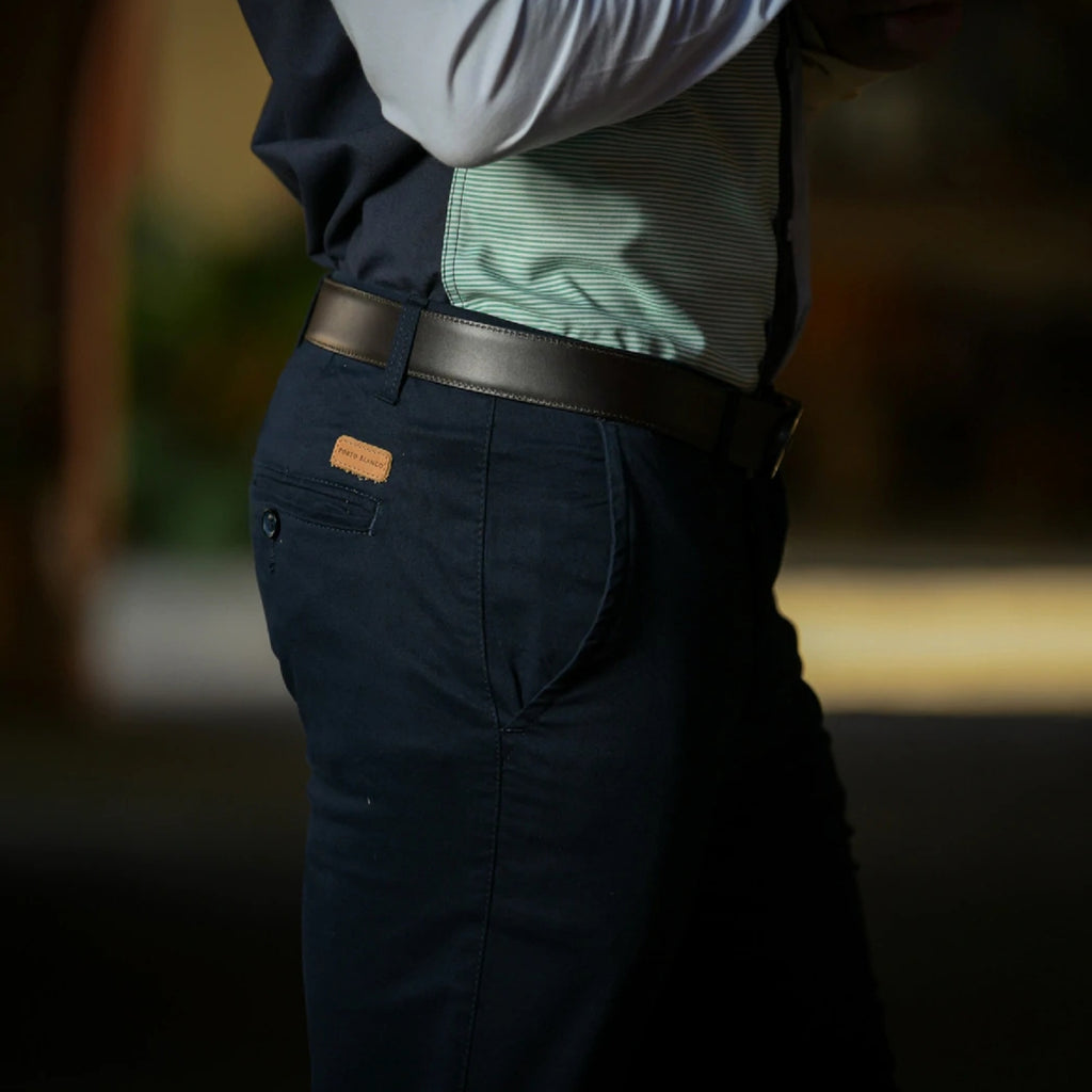 • Bolsillos ribeteados, bolsillos traseros con botón