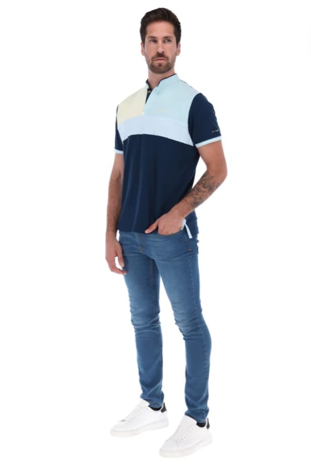 • Playera polo para caballero, estilo color block en tonos pastel.