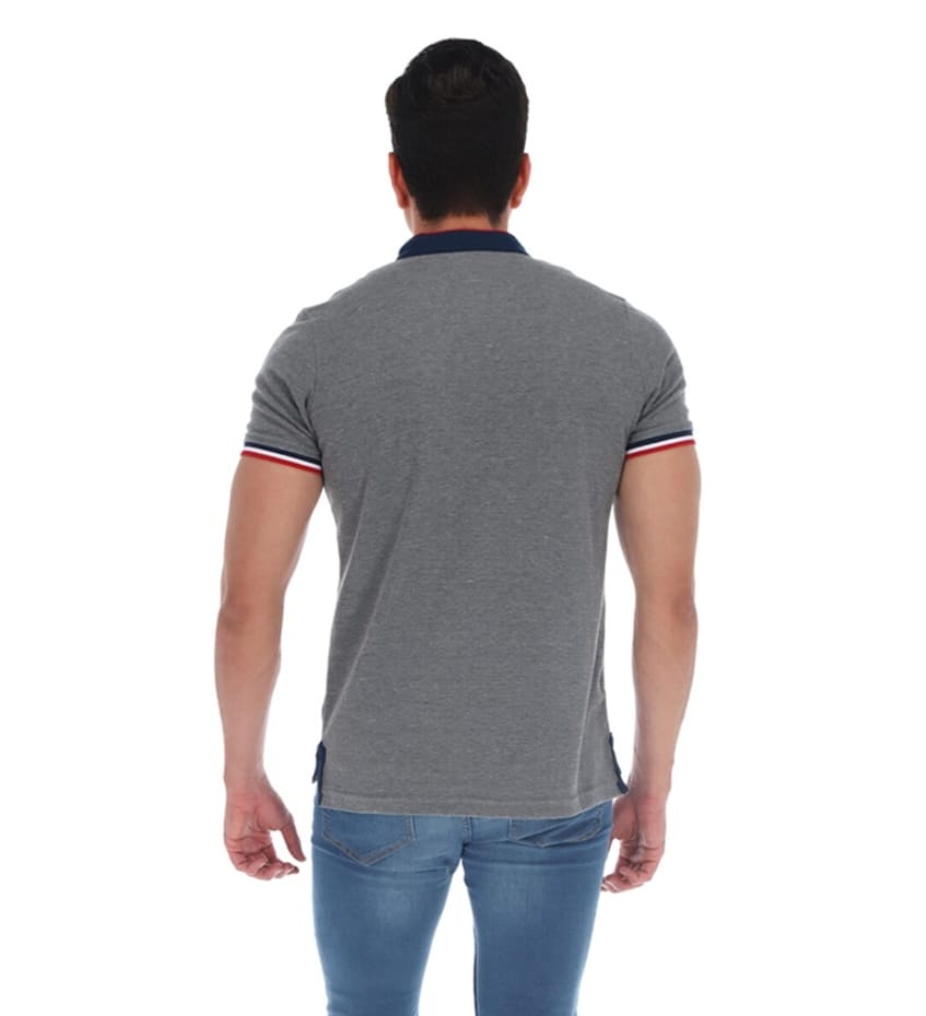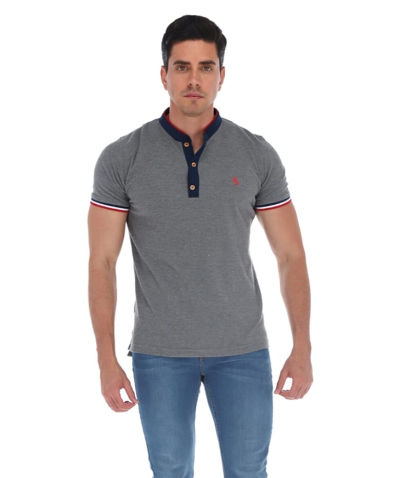 • Manga corta, cuello y puños tipo cárdigan a contraste de color