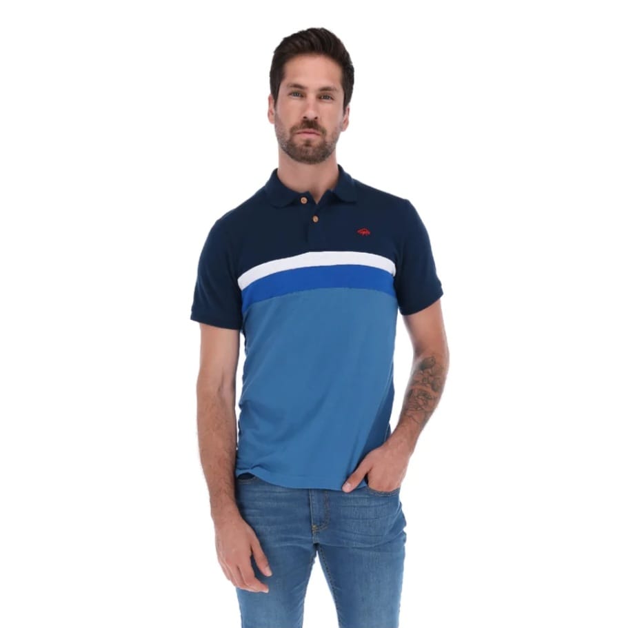 • Playera polo para hombre, estilo liso, detalle franja frontal, Corte regular, cuello y puños tipo cárdigan